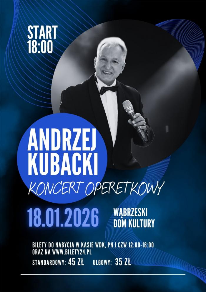 Natomiast 18 stycznia o godz. 18:00 w domu kultury odbędzie się wyjątkowy koncert Andrzeja Kubackiego – półfinalisty czwartej edycji programu „The Voice Senior”. Andrzej Kubacki to polski kompozytor i instrumentalista a zarazem twórca, wirtuoz, piosenkarz specjalizujący się w śpiewie klasycznym jako tenor. Artysta występował między innymi w Kanadzie, Norwegii, Szwecji, Egipcie, Holandii, Niemczech, Belgii oraz Słowacji.